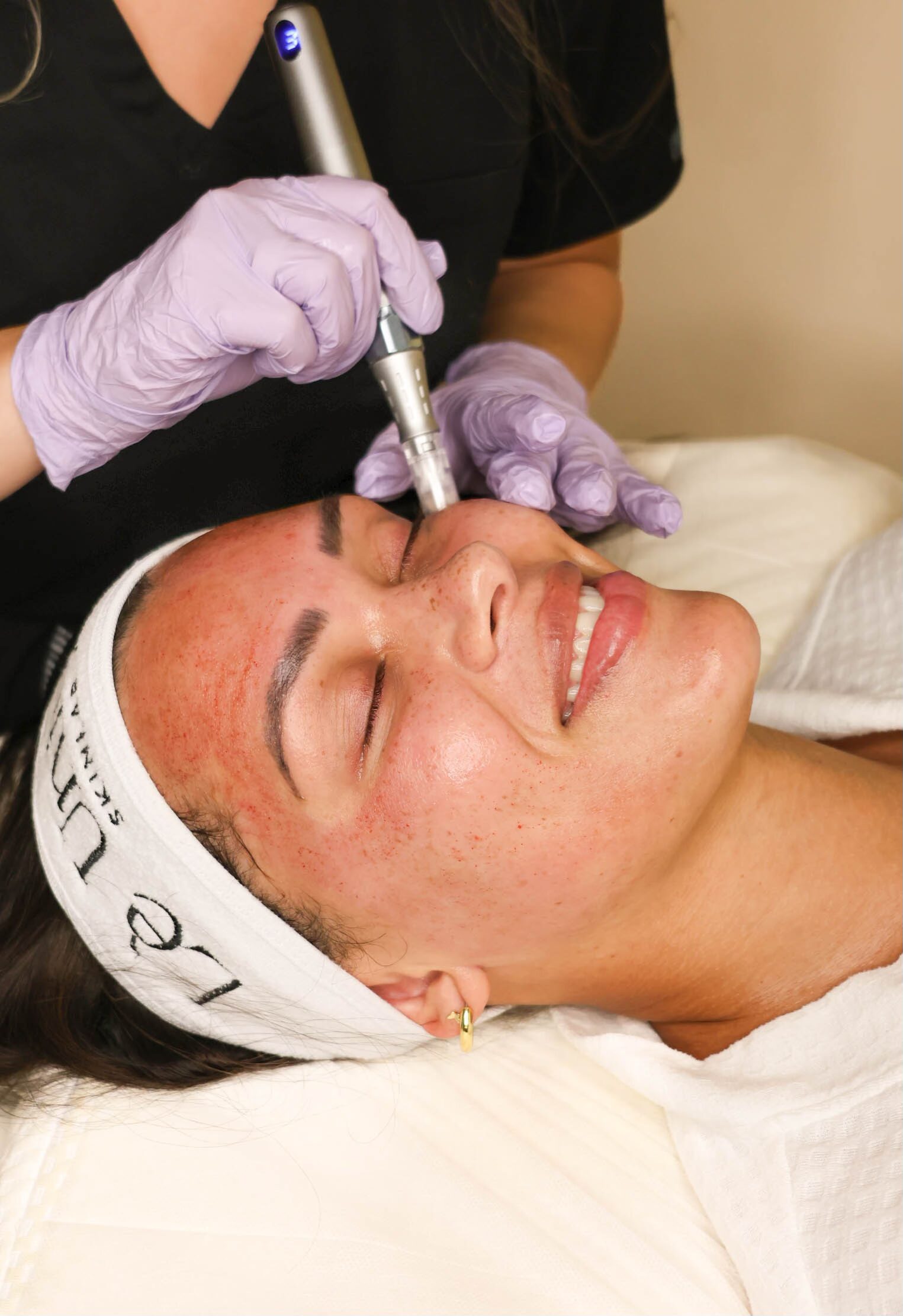 Microneedling is a minimally invasive treatment safe for most skin types. It works by creating tiny micro-injuries in the skin to stimulate collagen and elastin production, helping reduce fine lines, wrinkles, acne scars, enlarged pores, and uneven texture for smoother, firmer skin.